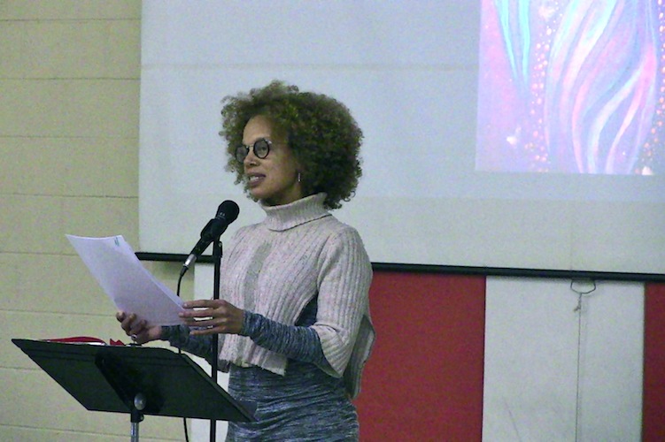 The question regarding the Black Panthers went to Elisheva Johnson, who was promoting her project, “Prison Policy Campaign,” an effort to address the school-to-prison pipeline, and disparate suspension rates for black children in Kalamazoo.