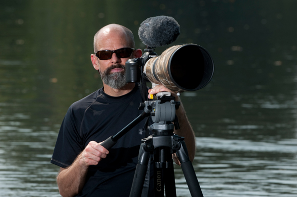 Matthew Clysdale behind the video camera he uses to document the return of the osprey. (Photo by Erik Holladay)