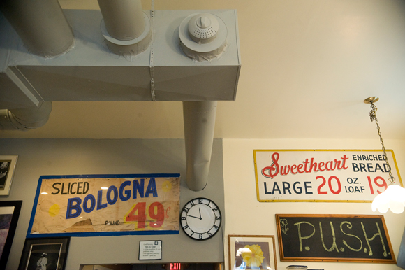 Inside the shop, a sign on the far wall reads sliced bologna 49 cents. Next to it: Sweetheart Enriched Bread 19 cents. As he tore out the walls during the laborious reconstruction project, Louis Parker unearthed the signs.