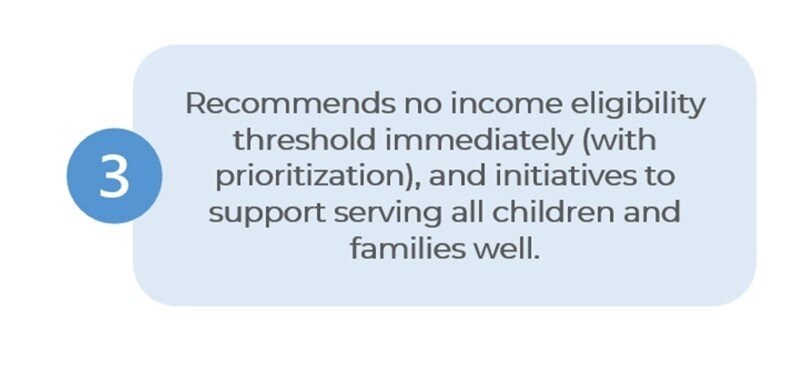 The PreK for All program would be open to all residents regardless of income with prioritization given to less advantaged families, ensuring families are referred to the program that best fits their child’s needs, such as Head Start.