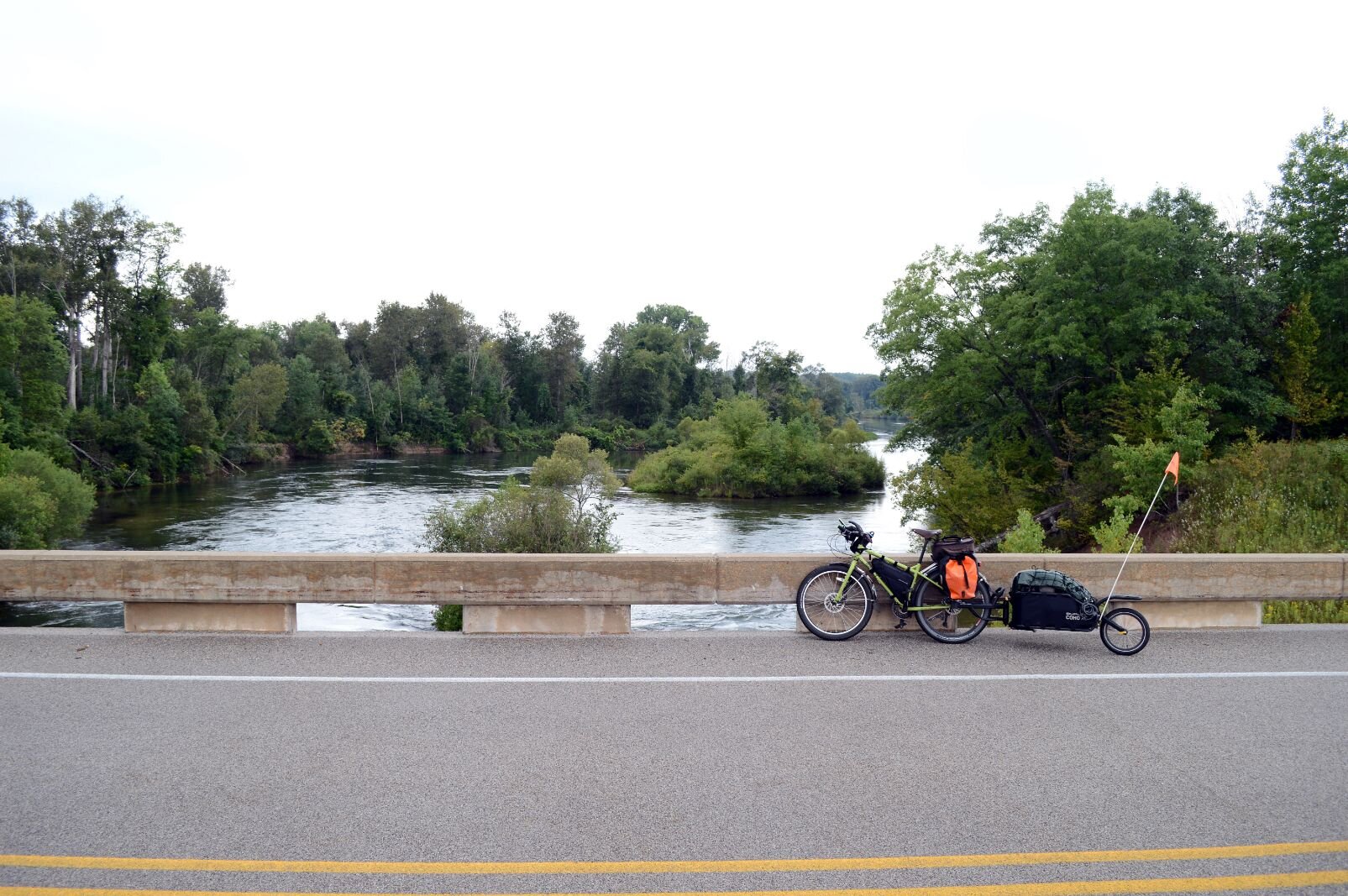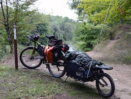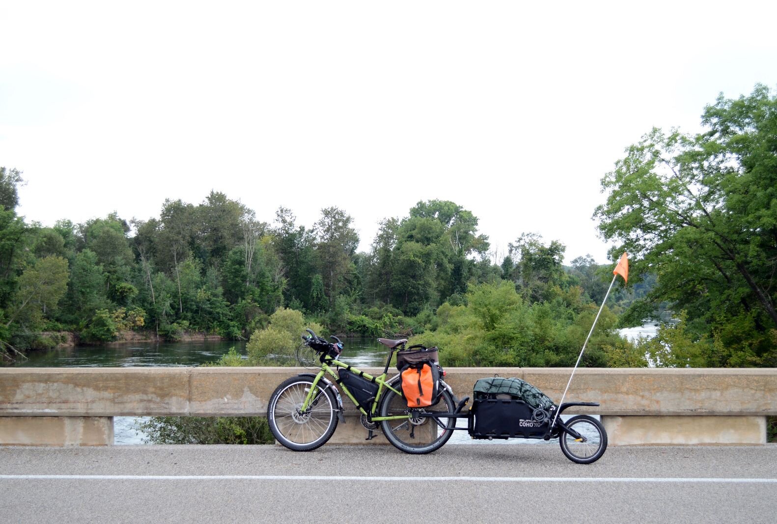 On this tour I was towing a Burley Coho trailer with my Surly Troll, loaded with camping gear. When I got the trailer last Christmas I’d thought, this time I would carry all I needed — from tent to dehydrated camping food — and not have to spend as much money at motels and restaurants.