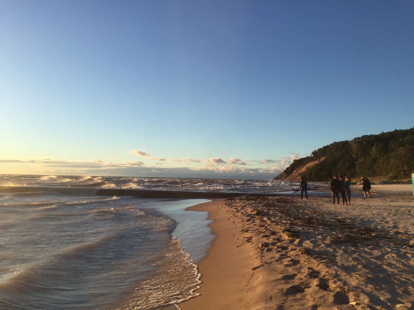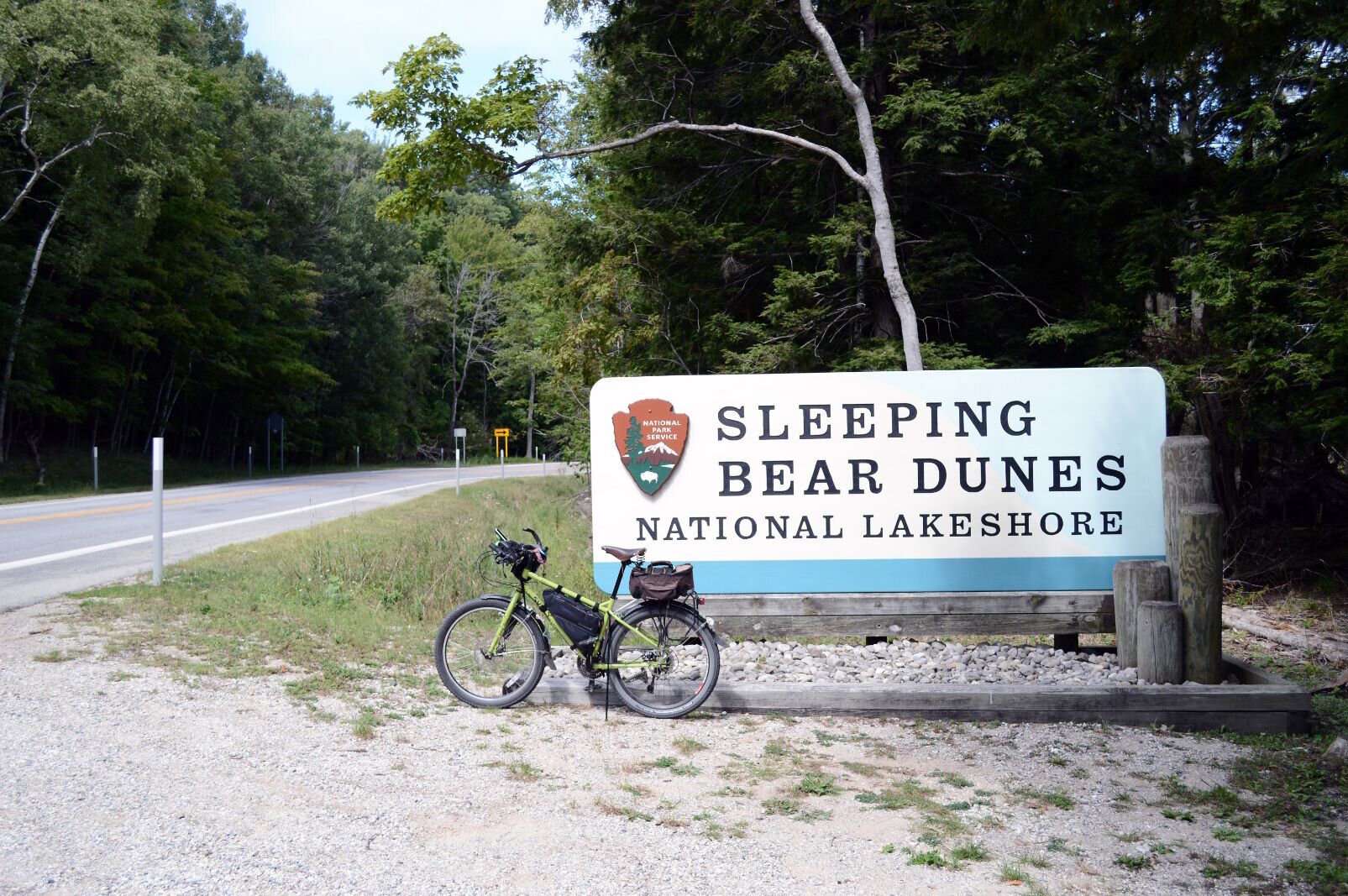 On a ”rest” day, left the trailer at the hotel and pedaled up USBR 35 to see some of the Sleeping Bear Dunes shore.