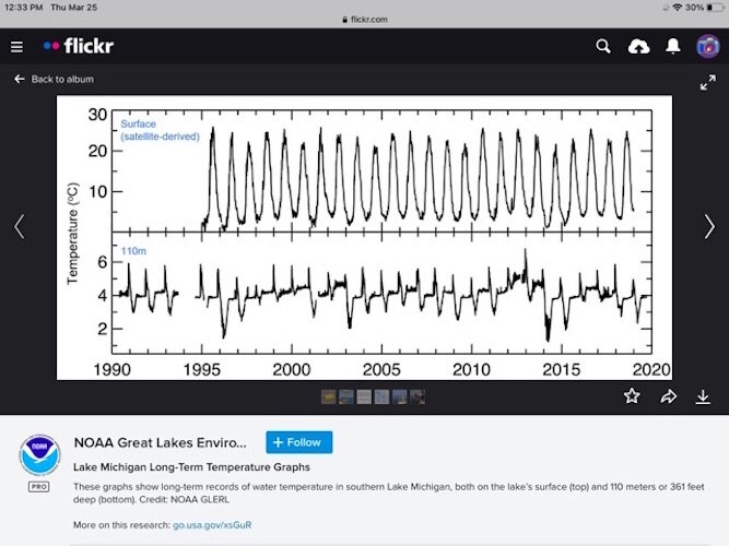 Link to NOAA Research, Climate-driven shifts in deep Lake Michigan water temperatures signal the loss of winter