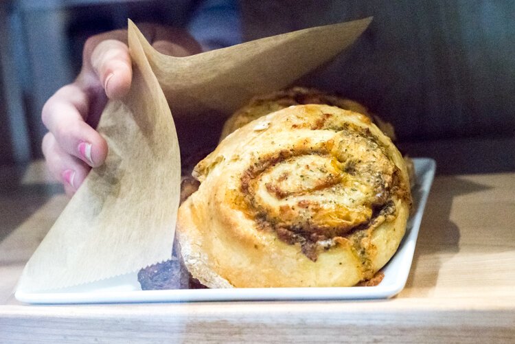 Walnut & Park cafe serves light breakfast and lunch items, including soup, salad, sandwiches and this spinach and feta danish.