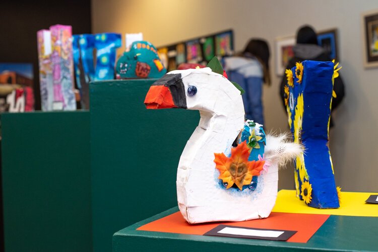 This year’s exhibit features the artwork of about 800 students. Holderbaum says most of the majority of submissions from elementary-age students are paintings because they are the easiest to transport with more multi-dimensional work coming from middle and high school students.