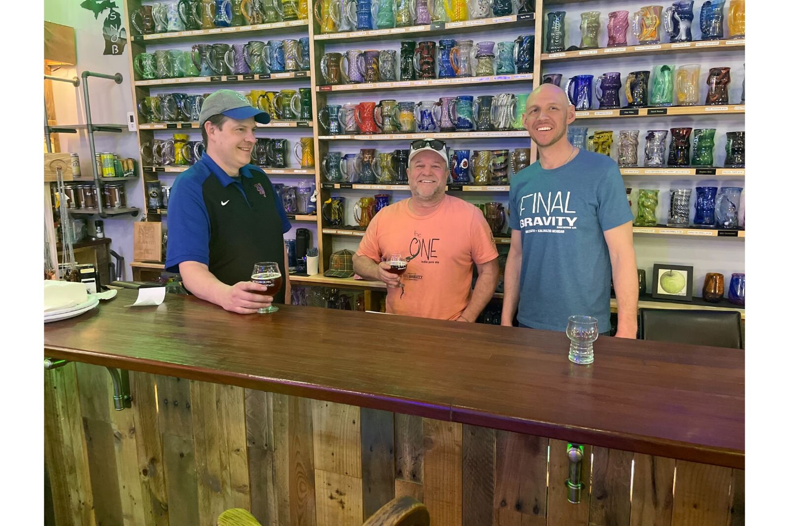 Channon Mondoux – At Final Gravity, from left, are Kevin Holman, General Manager Final Gravity; Kevin Christensen, Owner and Master Brewer Final Gravity; and Brian Mc Donald Bartender and an aspiring brewer, enrolled in the KVCC brewing program.