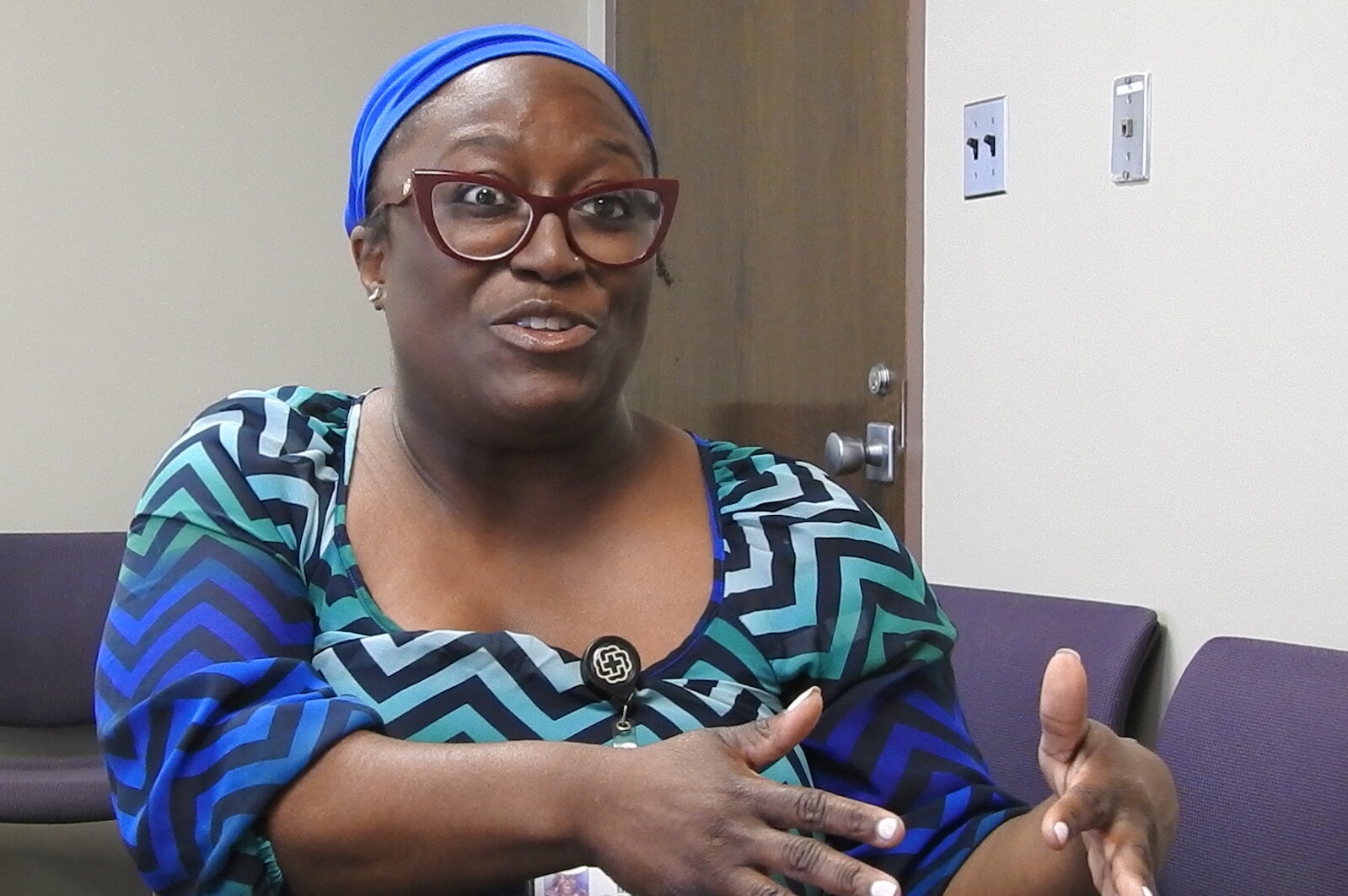 Elishae Johnson, directora de sistema de servicios de salud empresarial en Bronson Healthcare, habla sobre la importancia de los enfermeros practicantes en salud mental psiquiátrica en Bronson Battle Creek Psiquiatría y Salud Mental en mayo.