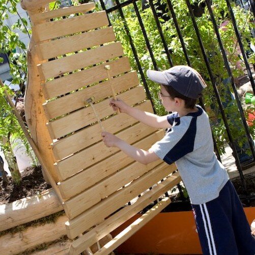 In addition to providing city kids a spot to romp in near Bronson Park, the new playscape can help promote environmental education, from spontaneous play to formal teaching.