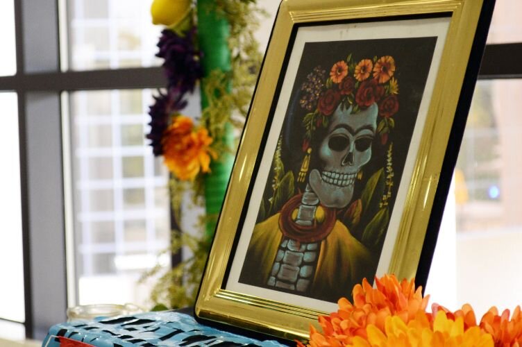 The library altar isn’t set up for anyone specific, “it’s very general, dedicated to the Catrina,” Gladys Cruz Mendoza, Spanish Department teaching assistant, says.