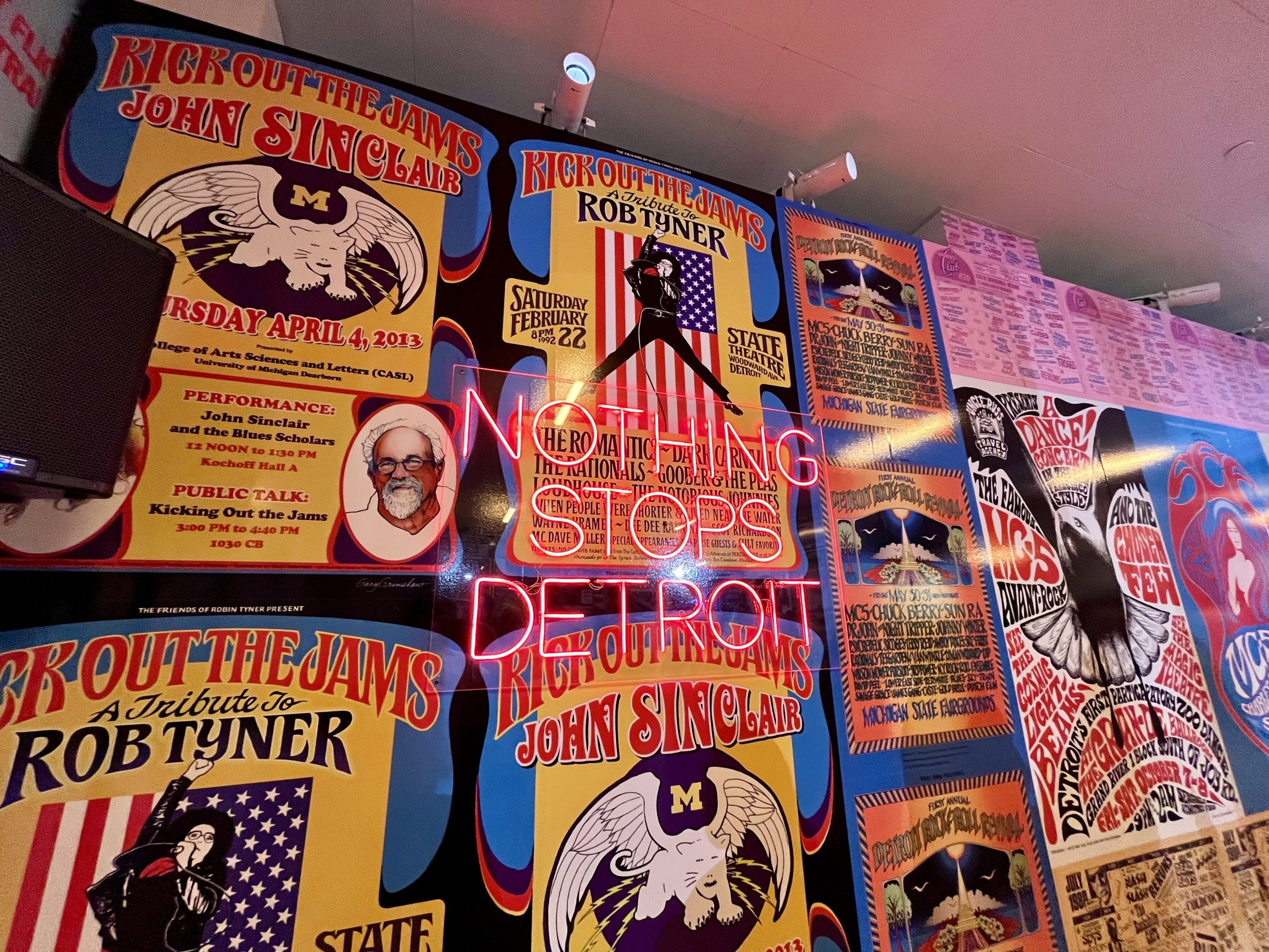 That weekend I also visited the Eastern Market, Detroit’s old thriving farmers market, where I bought from an urban art dealer an original “Don’t Let The City Eat You!” sticker for my bike. Went to Third Man Records where I tried to prove I was hipper than the staff by asking if they had what should be a Detroit classic, The Dirtbombs’ “Party Store” on vinyl. They did not, and I managed to hold back my aging hipster judgment.