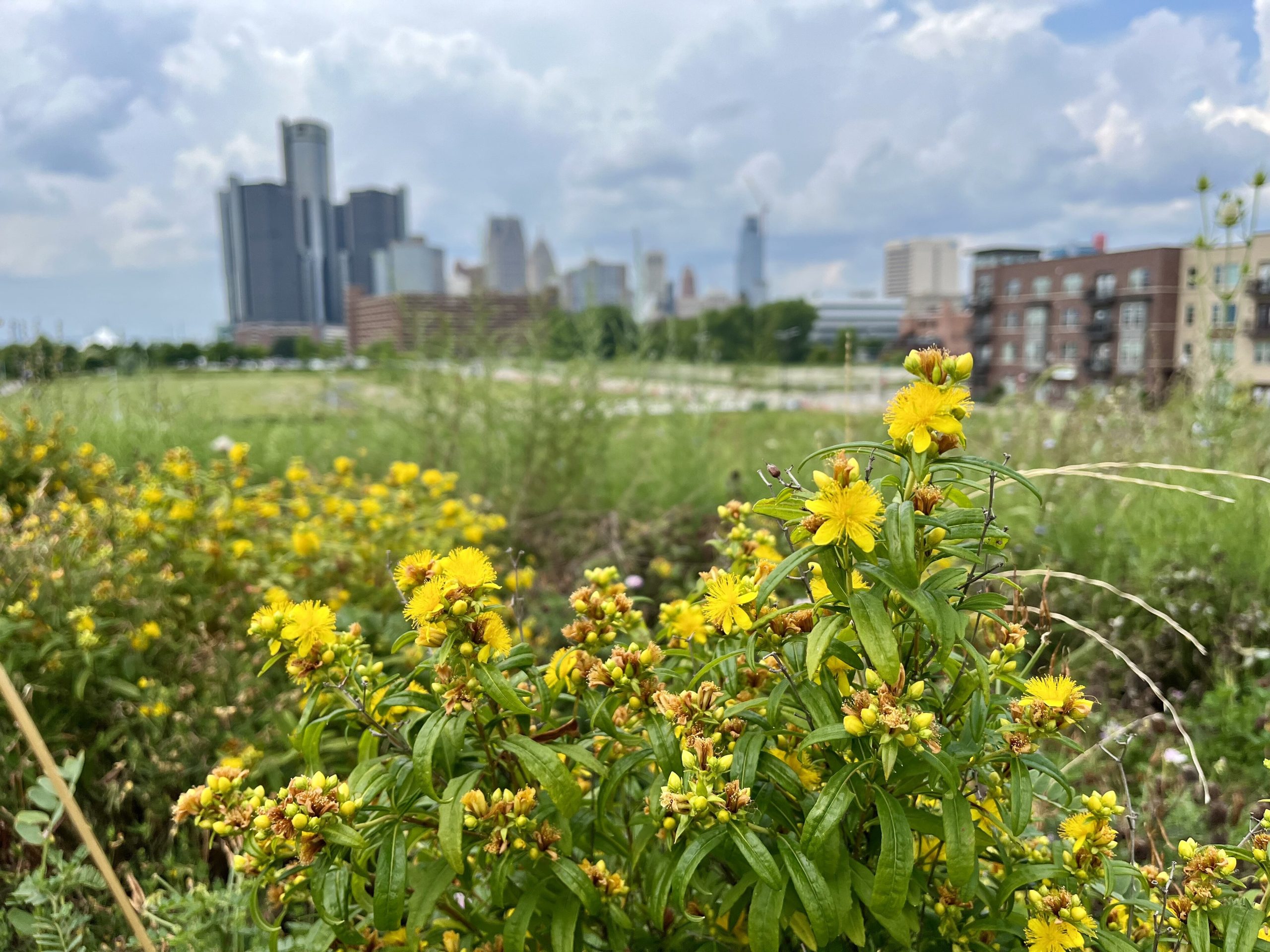 The view on Ze Mound, a hill of wildflowers on the Detroit RiverWalk.