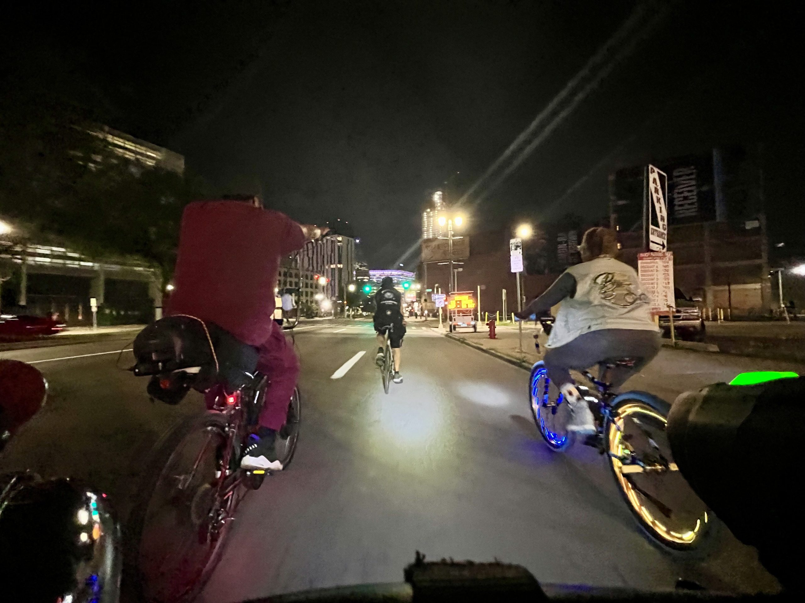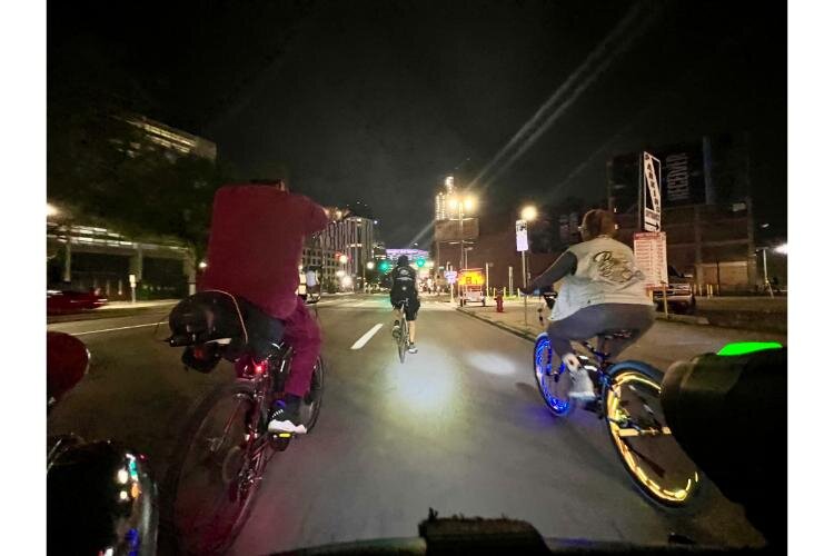 “We give people a tour of Detroit that you just don’t see on a big group ride or on a daytime ride,” Crow says. “It’s always safe. And everybody comes out and they always have a good time, because you see a side of Detroit that you don’t normally see from driving in a car.”
