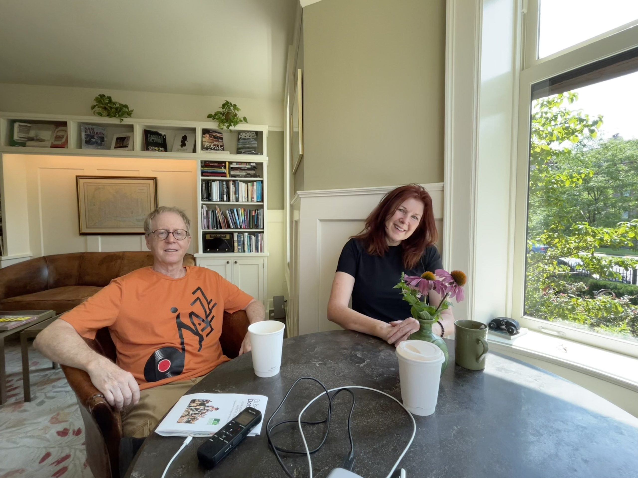 El Moore residents gather in the building’s community parlor. Andy Ross and Megan Powers talk about bikes with the author.