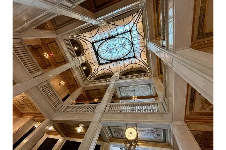 Pedaled north to see the Fisher Building, and south to see the Book Tower, two old skyscrapers that are evidence of a time when the city was flooding with money. Like Michigan Central, they were built as temples to a new century. The Book was the tallest skyscraper in the city when it was built in 1916, 38 stories of Italian Renaissance style. The Fisher is only 30 stories, but is festooned with 1920s Art Deco touches.