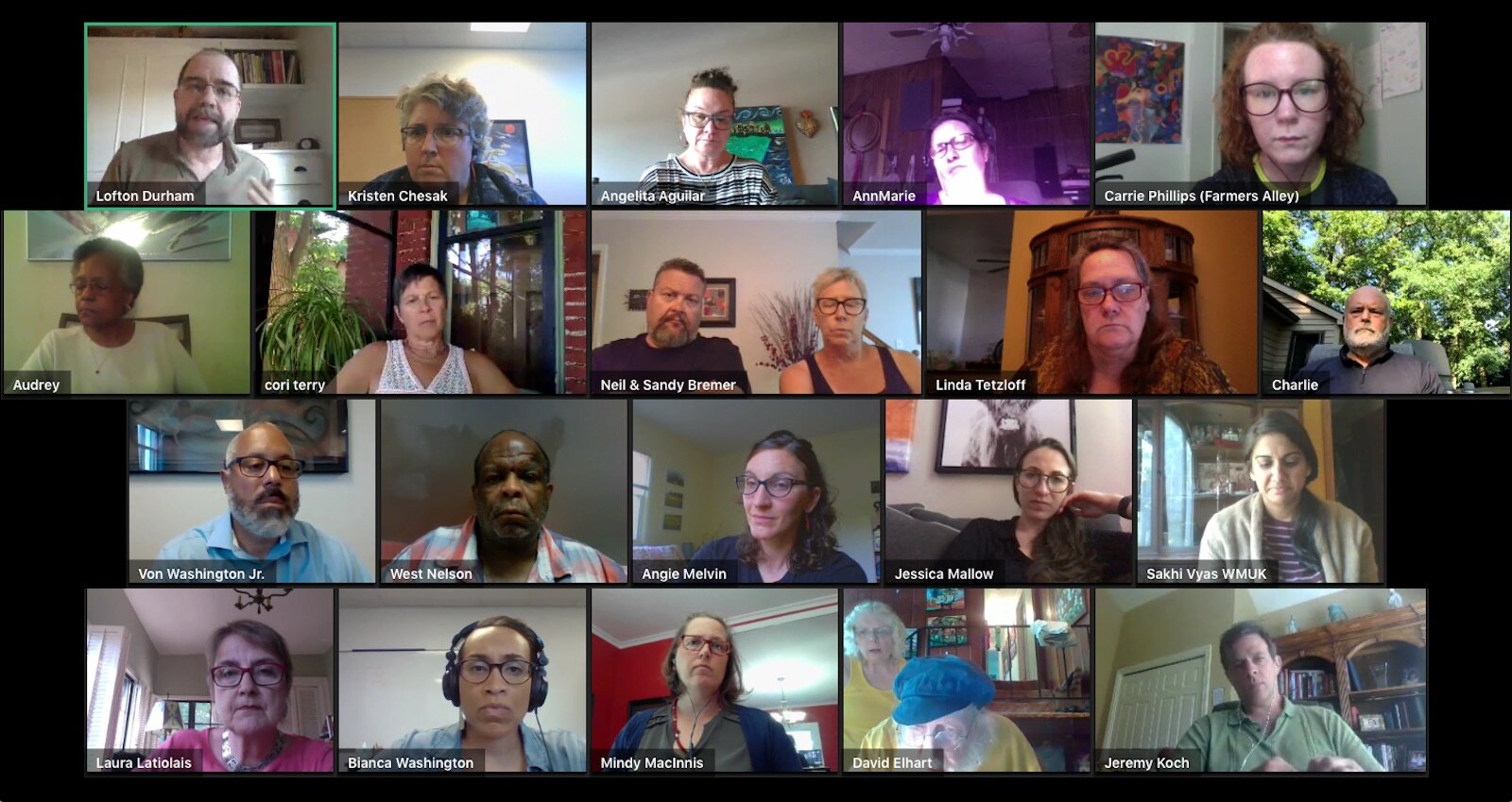 Mark Wedel – A portion of the participants in a discussion about eradicating racism in the arts that drew 60 participants and was hosted by the Arts Council of Greater Kalamazoo.
