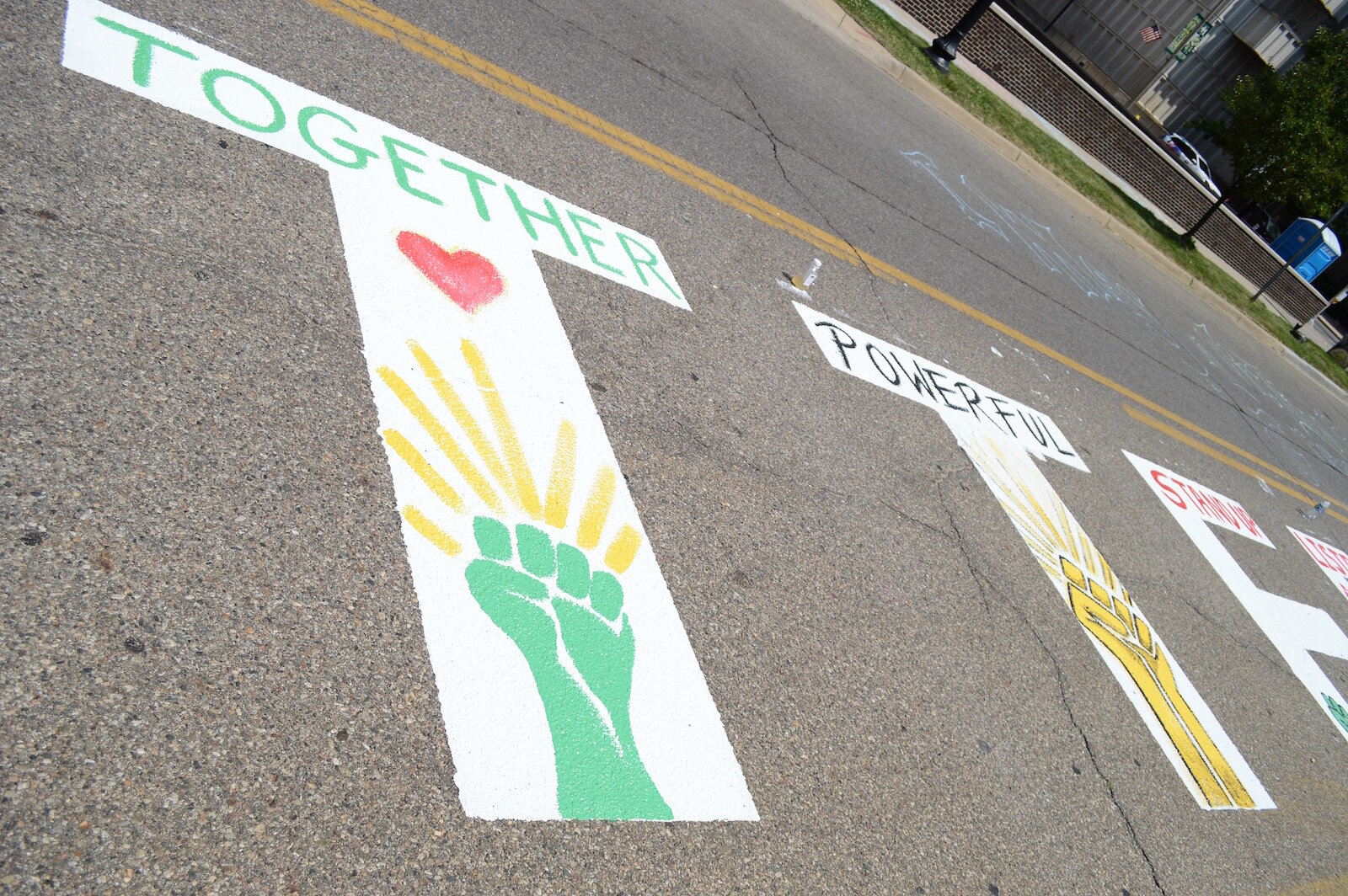 Artists were downtown creating Kalamazoo Black Lives Matter street art, June 19.