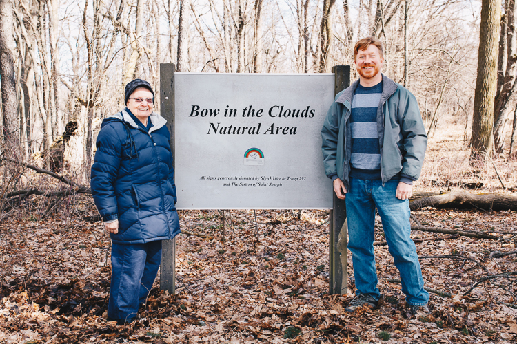 Eric Hennig, VAGUE photography – Sister Virginia “Ginny” Jones and Nate Fuller, director of the Southwest Michigan Land Conservancy, have formed a special friendship through their devotion to Bow in the Clouds Preserve.