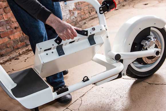 For example, the floorboard is the battery. Where most electric bikes better have an outside outlet, the Fido battery can be taken off with ease, and brought inside to charge.