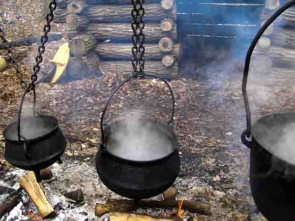 “We will demonstrate how the sap was collected, boiled, until it evaporates into the syrup we know,” says Byler. Collecting and producing syrup has changed over the years, he says, using metal spiles rather than the wooden spiles of yesteryear. While sap was once boiled in large pans outside with the steam roiling off until the water evaporates, “today we use evaporators indoors. But it still takes a long time.”