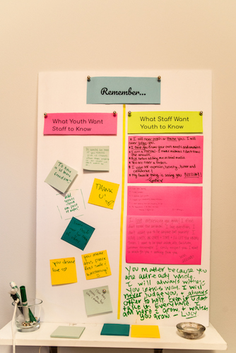 “We ask them, ‘Who wants to start the icebreaker? Does anyone have a good question?’ They do it and they get the feeling of ownership,” Kennedy says. “They have opportunities to be heard, and listened to, and see what they say become real very quickly. Not every organization responds quickly to the needs of youth. They tell us they would like condoms in the restrooms. OK. They’re there.”