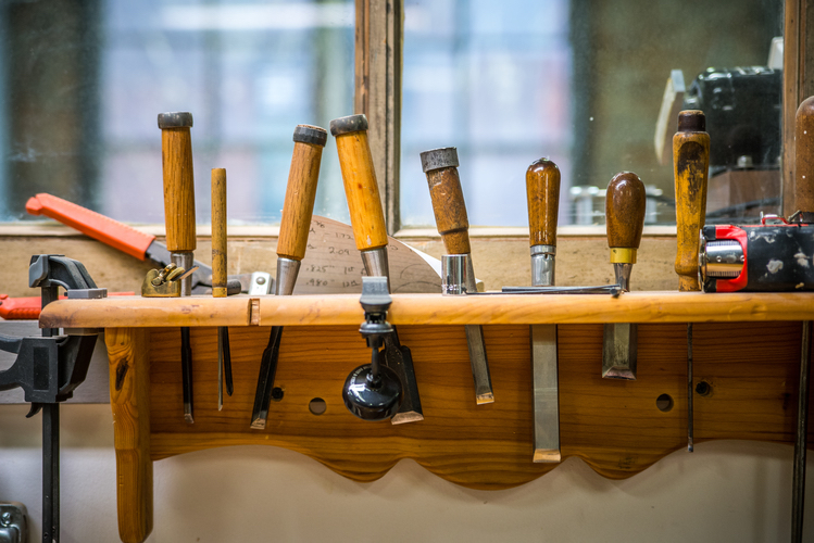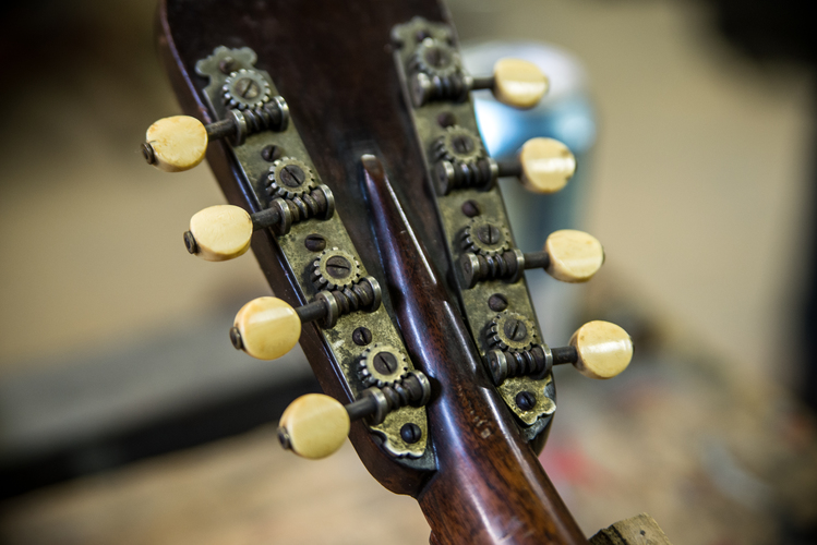 Charters says the location suits him in many ways. For one, he feels like he’s working in a museum, a first place he visits whenever he’s in a new town. “We have a safe vault, for crying out loud,” he says. “They used to make Gibson banjo parts here in the 30s—they talk about how there was a safe where they would keep this billets of brass, which looked like gold.”
