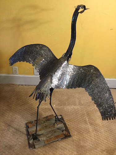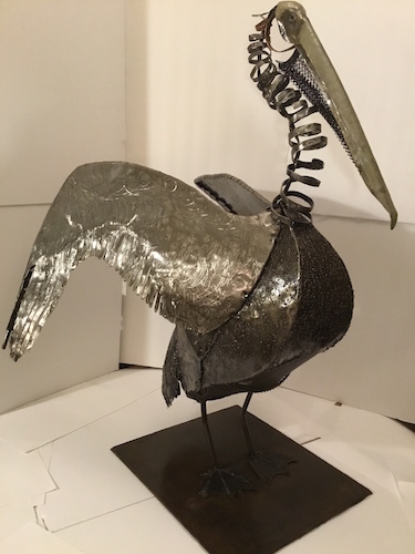 Schelhas, who began working with metal six years ago after semi-retirement from an ad specialty business, finds her surroundings conducive to artistic exploration. Her metal creations now populate her three-story home.