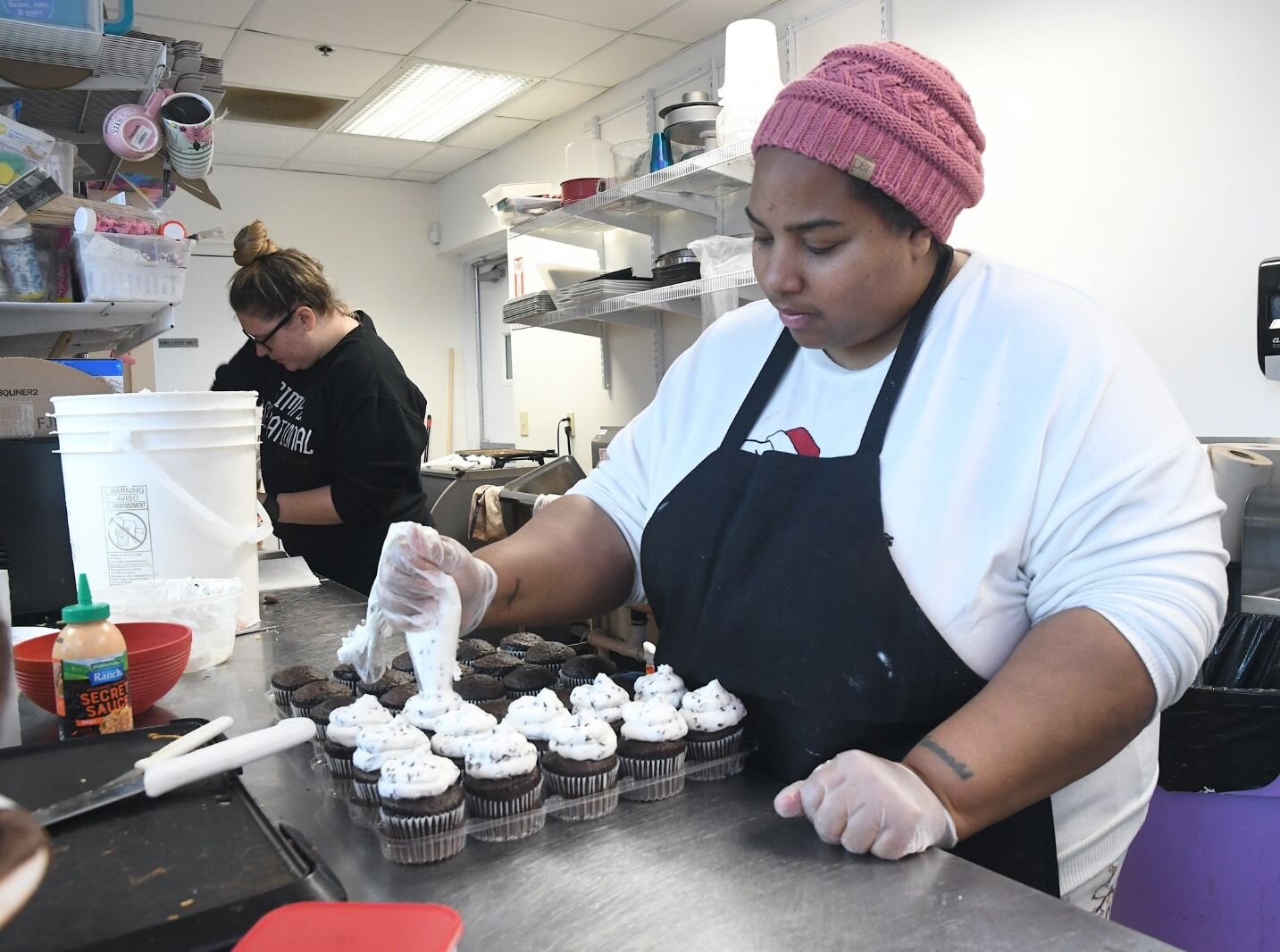 John Grap – Markeeta Palmer, owner of Simply Sensational, 80 W. Michigan in downtown Battle Creek, decorates a pastry.