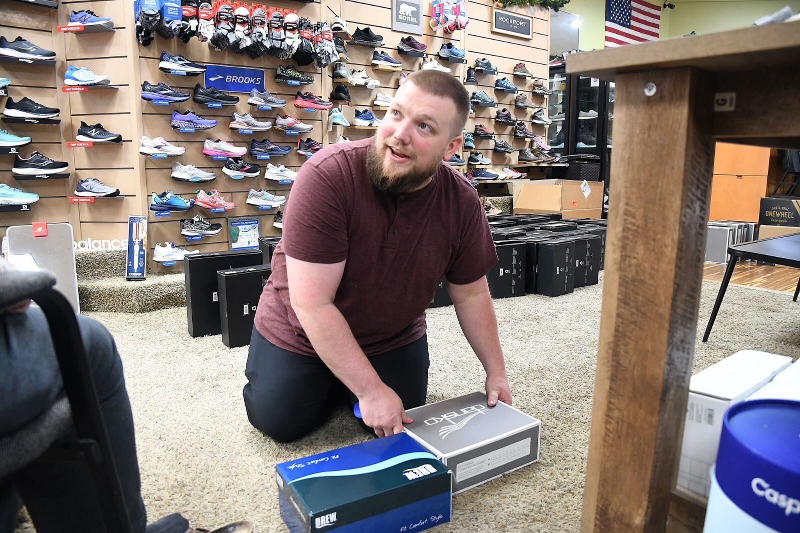 John Grap – Lance Graham talks with a customer at Rice’s Shoes at 62 W. Michigan in downtown Battle Creek.