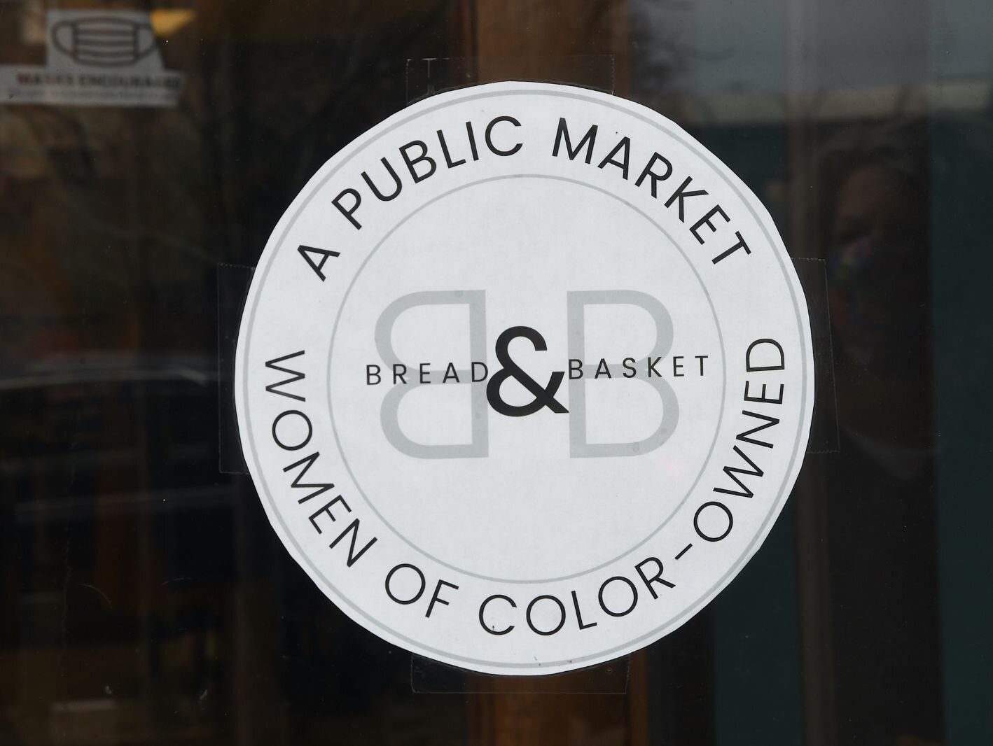 John Grap – Logo on the front door Bread and Basket public market, at 38 E. Michigan in downtown Battle Creek.