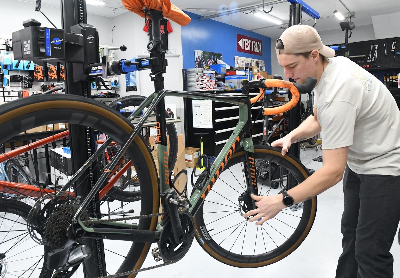 John Grap – Jason Fraley works on a bike at Mike’s Team Active Bikes, 22 W. Michigan in downtown Battle Creek.
