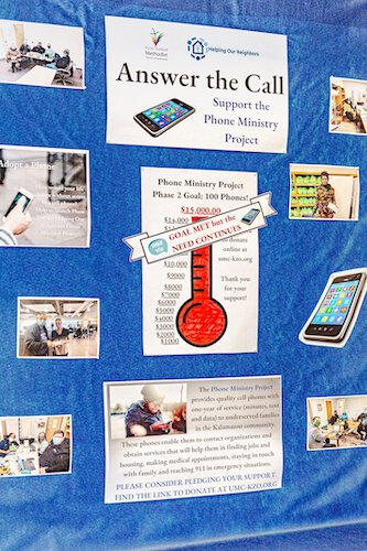 Members of Kalamazoo First United Methodist Church have helped the unhoused in other, more direct ways. It has provided free meals at the church, and then at several homeless encampments after the COVID pandemic began. It also began providing free mobile phones to the unhoused.