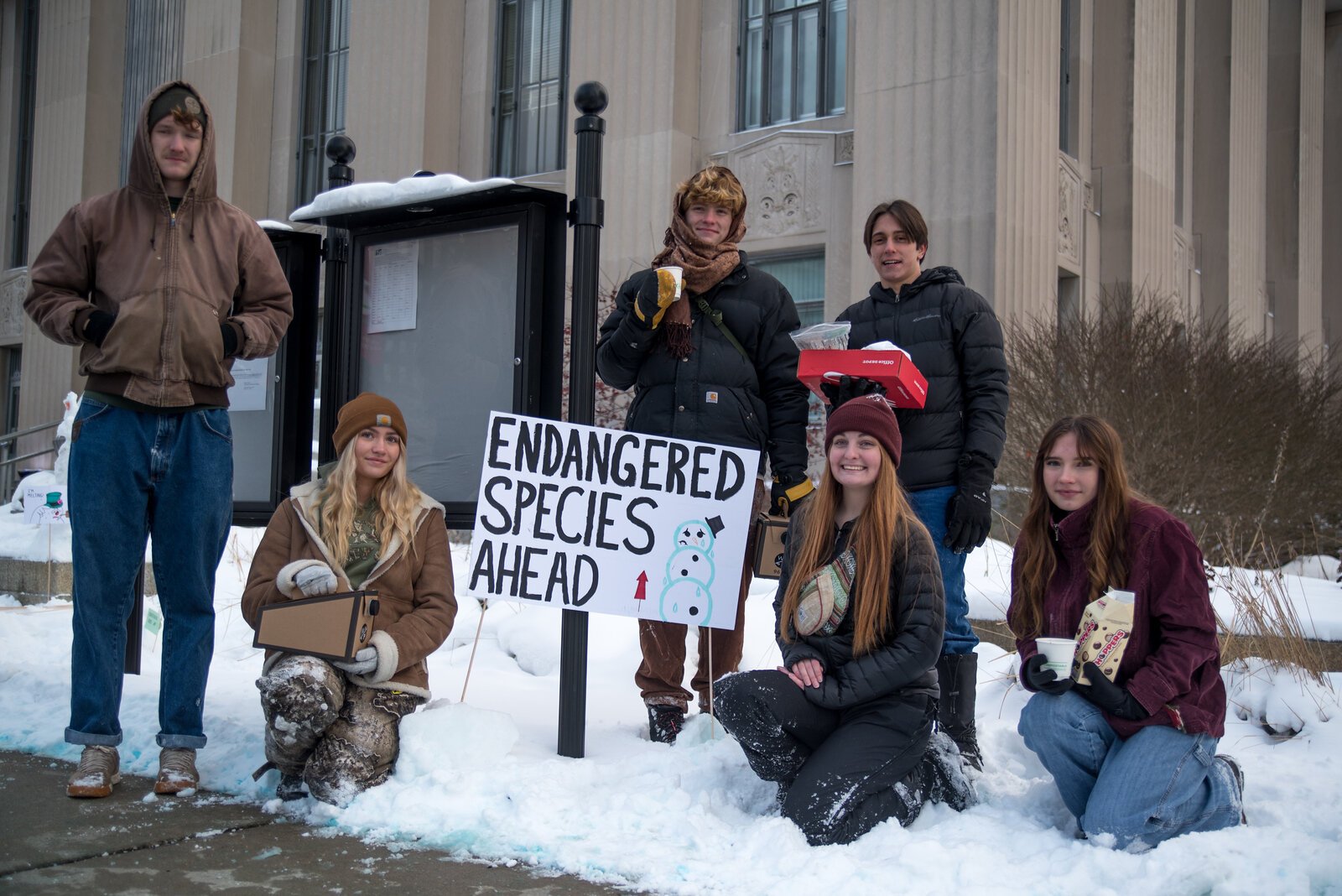 “Here in the Midwest, making snowpeople is a quintessential part of childhood, and Kalamazoo youth are not ready to see that tradition end thanks to climate change,” says Mia Breznau, a spokesperson for Ardea and senior at Mattawan High School. “So, even though our snow critters are currently endangered, we hoped to show through this protest that it’s not yet too late to save them, and the key to doing that is through governmental action, specifically by passing a carbon fee.”