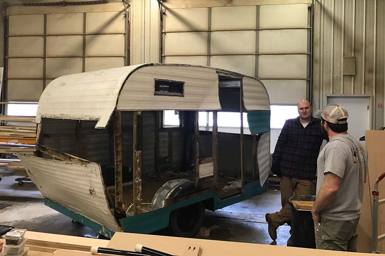 The camping vehicle from 1965 was in rough condition and Blough could not stand up straight inside it.  “It was in pretty bad shape because it’s really old so we pretty much gutted the whole thing.”
