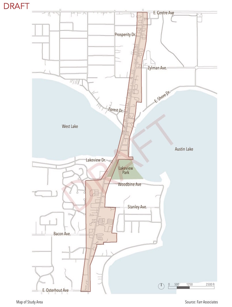 The placemaking study spans an area between East Osterhout Avenue and East Center Avenue, approximately 2.5 miles in length. It covers more than Portage Road. It’s an ambitious 20+ year plan, to be implemented step-by-step. The study is by Farr Associates, led by nationally-known architect and urbanist Doug Farr.