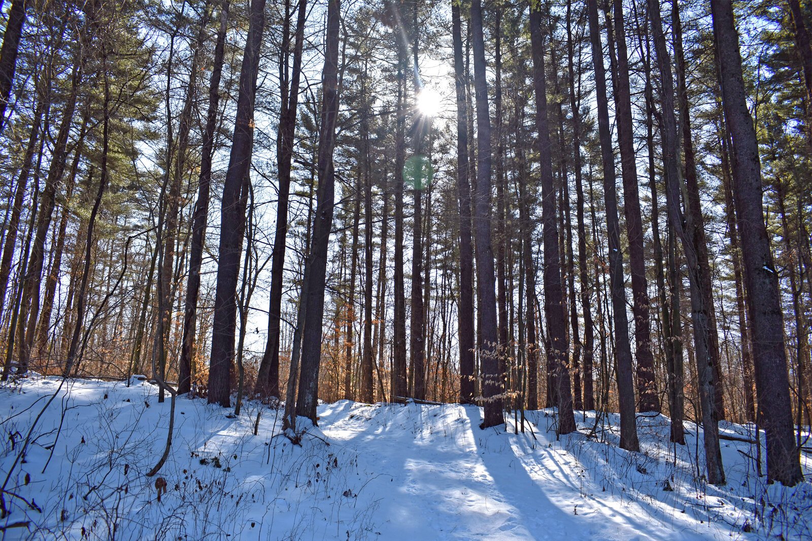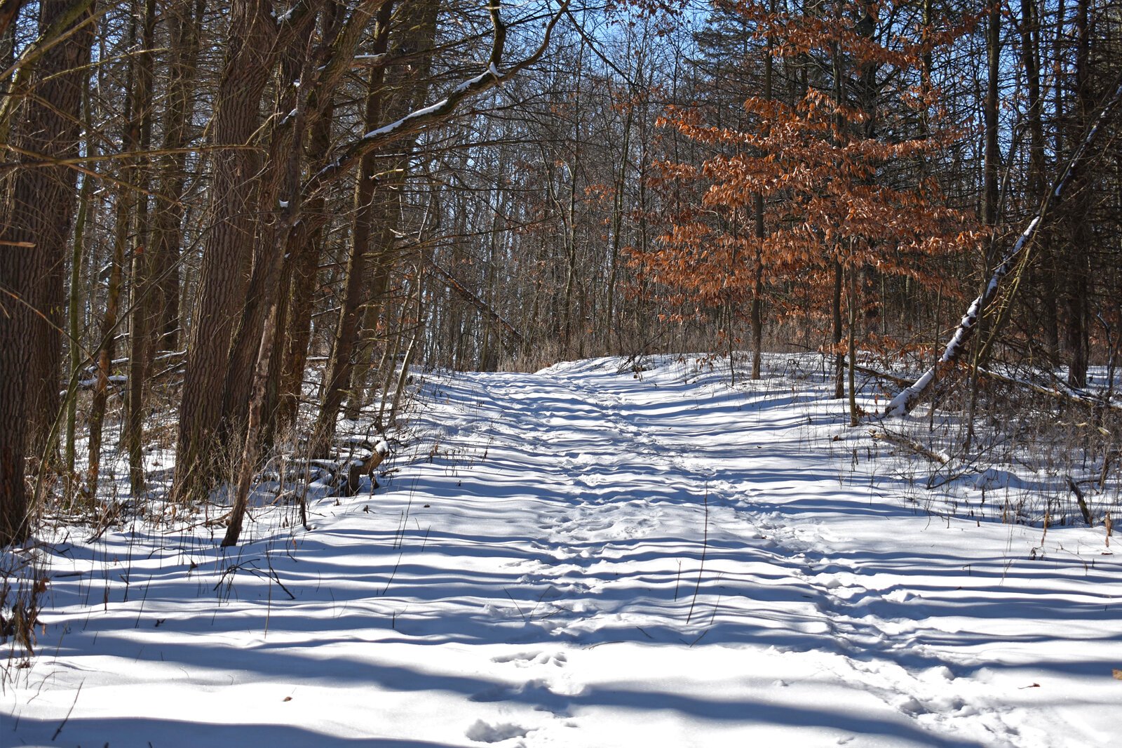 Courtesy of the Southwest Michigan Land Conservancy – Sun shines through the trees in a wintery scene at the new Armintrout-Milbocker Nature Preserve.