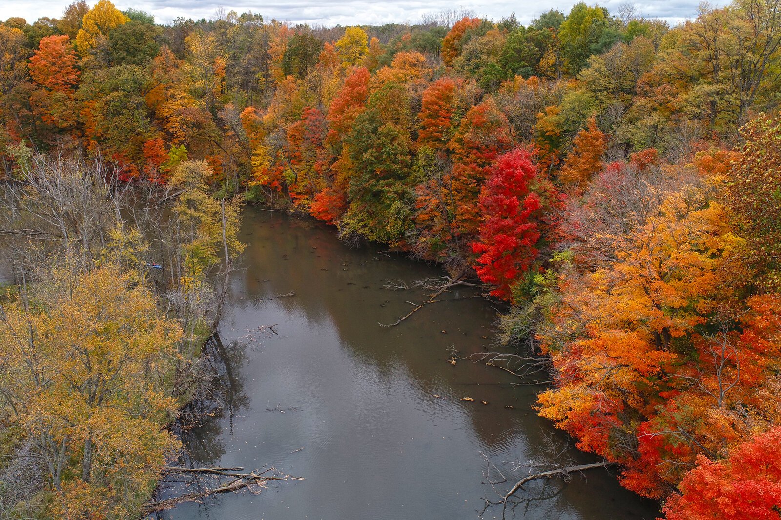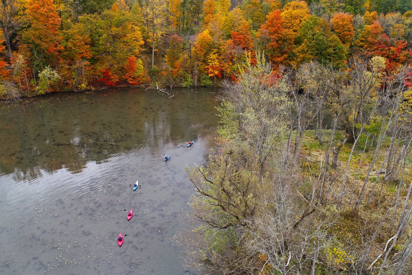 Courtesy of the Southwest Michigan Land Conservancy – Fall colors highlight a stretch of the Kalamazoo River in the Armintrout-Milbocker Nature Preserve.