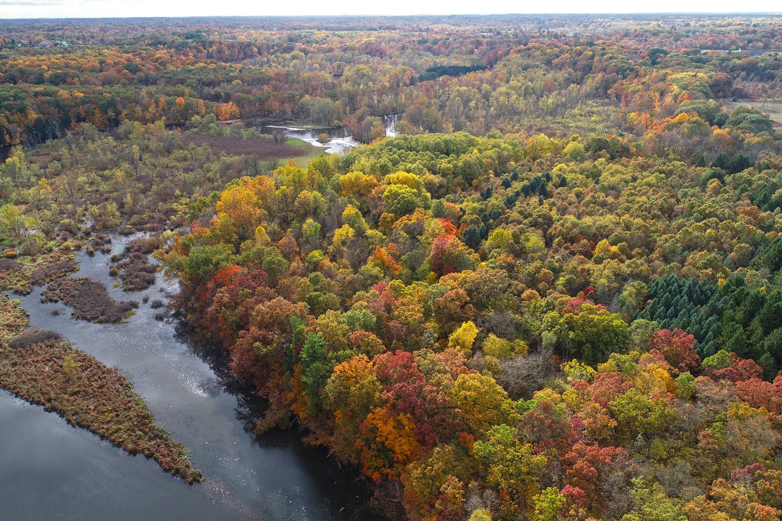 Fall colors complement three miles of Kalamazoo River frontage and 100 upland acres of mostly pine and oak forest, fringed with 40 acres of diverse wetland at the new Armintrout-Milbocker Nature Preserve.