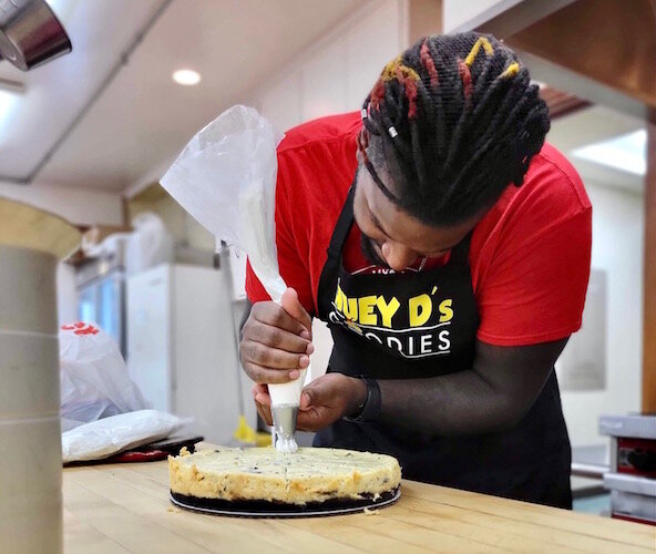 Courtesy of DeMargeo C. White – Products by Huey D’s Goodies, including a variety of cheesecakes and cupcakes are made, packaged and delivery by DeMargeo White.
