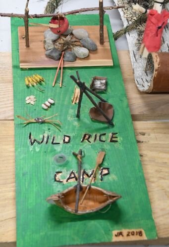John Grap – A model of a wild rice processing camp demonstrates examples of tribal food sovereignty, including traditional foods such as corn, beans and squash (referred to as the Three Sisters due to their companion growing method).