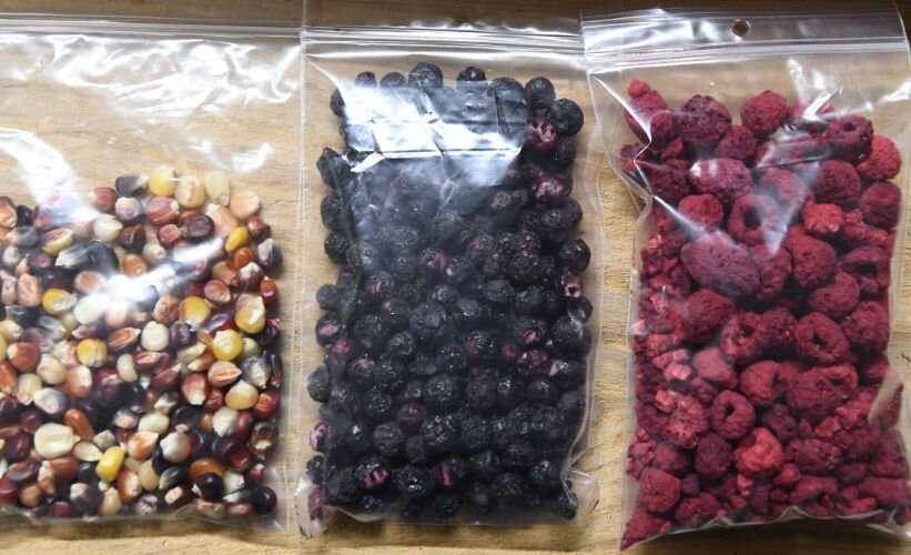 John Grap – Examples of traditional foods, including cultivated Indian Corn and dehydrated examples of foraged blueberries and raspberries.