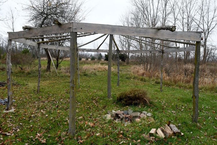 John Grap – The arbor is the focal point of the Tribe’s Wild Rice Processing Camp, a traditional community event held in early September. The fire ring is the location at which wild rice is parched, which is the step prior to threshing and winnowing.