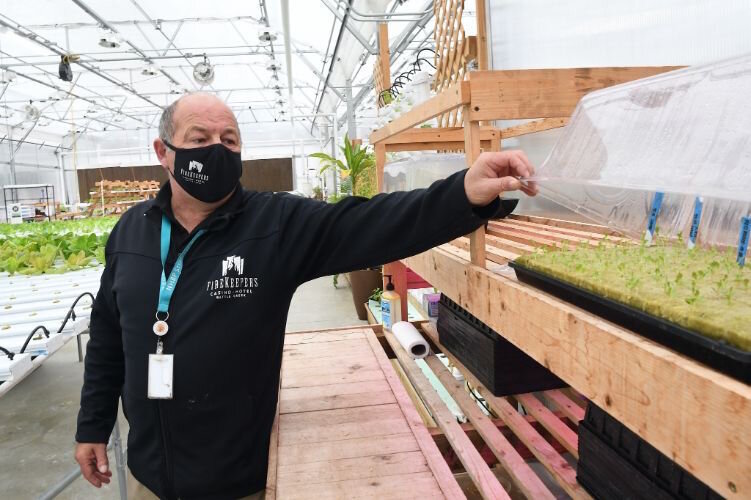 Steve Wherry, Greenhnouse House supervisor, points out some seedlings at the Pine Creek Indian Reservation.