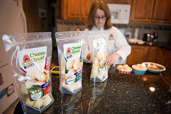Over the last year, Russell says, she’s sold 4,700 packages of her cheese buns, and she is now experimenting with a type of cheese bun that could be used as a hamburger or hot dog bun, or a Panini-style bun. She currently employs two part-time helpers, one of whom is her daughter.