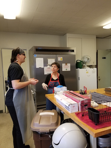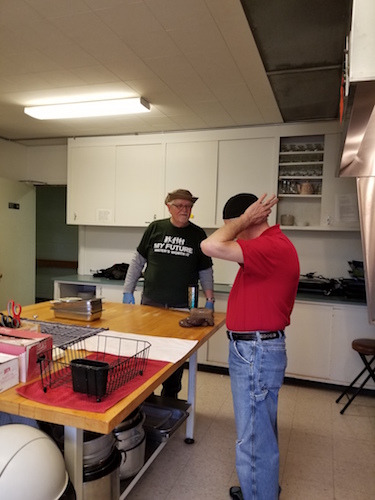 The meals are prepared, cooked, and served by volunteer groups of between 10 and 15 people. Some of them are members of St. Tom’s and others are with other churches, organizations, or service groups in the community. These volunteers gather at 7 a.m. and the doors open at 8:30 a.m., earlier if the weather is not good.