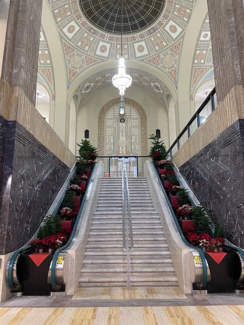 Case, who specializes in historic preservation architecture, was brought on board to ensure that the restoration of the building would retain much of the original appearance of the building. Together, he and Harmsen located artisans and craftsman who were able to match the original colors used to paint the ceiling on the mezzanine level and the lobbies, masons, and plasterers who painstakingly worked to ensure smooth and lasting surfaces, and preserved historic doors on the mezzanine level.
