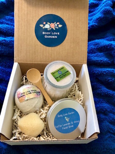 For her bath and body products line, called Body Love Garden, she produces personal care items including bath balms, bath salts, body scrubs, facial masks, and foot scrubs. And she enjoys the creativity that comes with gardening and using herbs and plants.