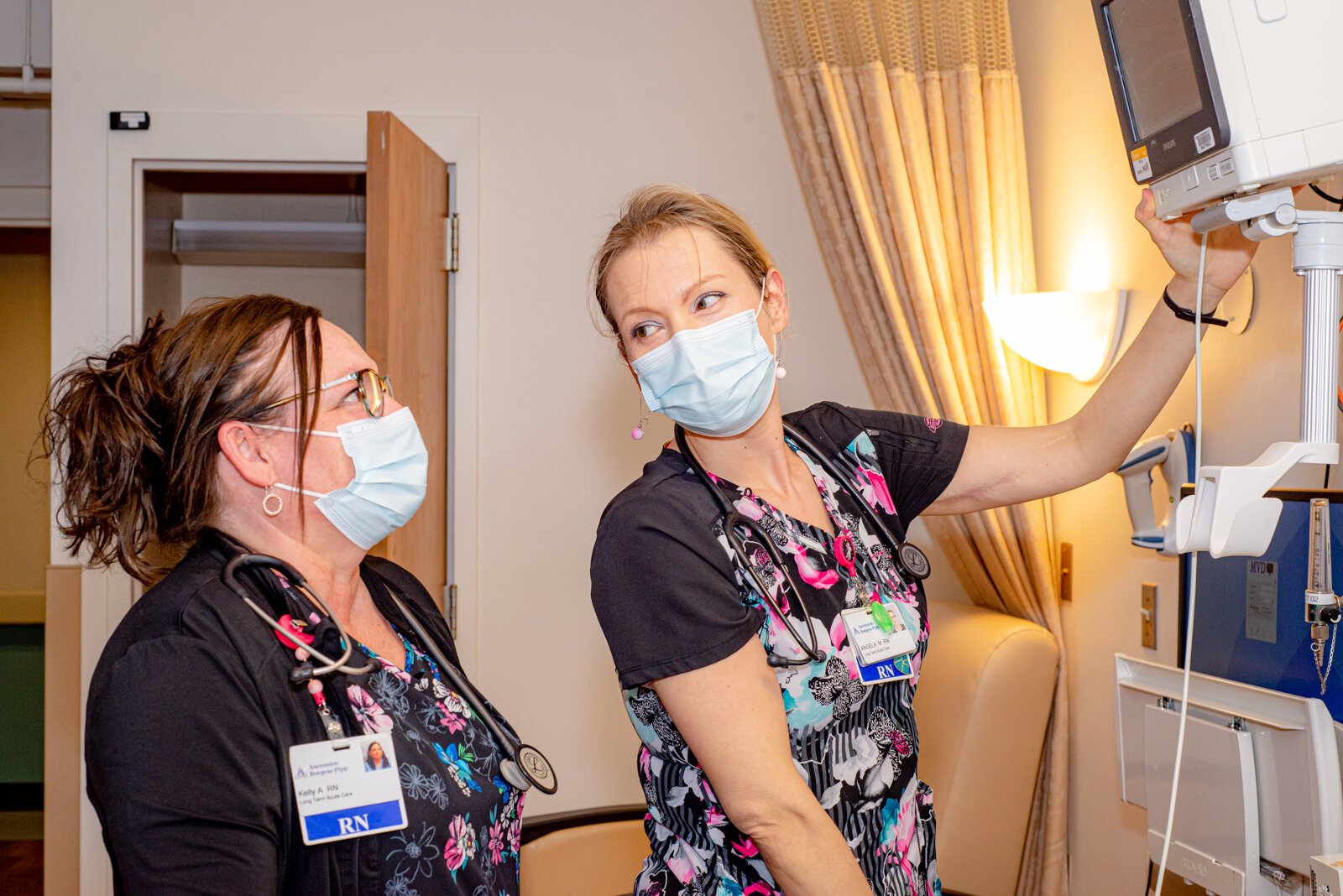Angela McIntyre and Kelly Asselmeier are registered nurses at Ascension Borgess-Pipp Hospital, a long-term acute, special needs and emergency care facility in Plainwell, Michigan. McIntyre has worked in nursing for almost four years; Asselmeier for 12 years. Their usual shift is 12.5 hours with a 3- to 4-day work week.