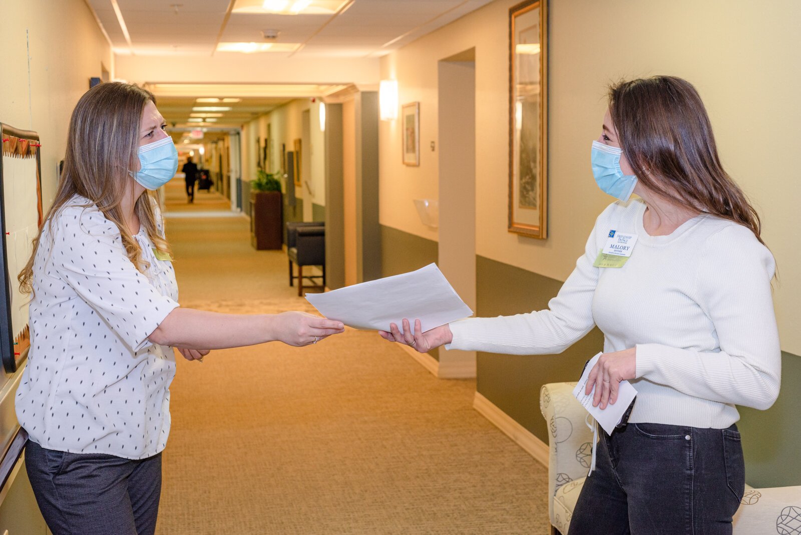 Reagan Rhoderick, director of resident services; Stephanie Edwards, director of human resources, Ashley Jamieson, director of nursing for Woodside Assisted Living at Friendship Village, and Diana Duncan, director of sales and marketing, came together at Friendship Village to talk about the support systems available to their health care workers.