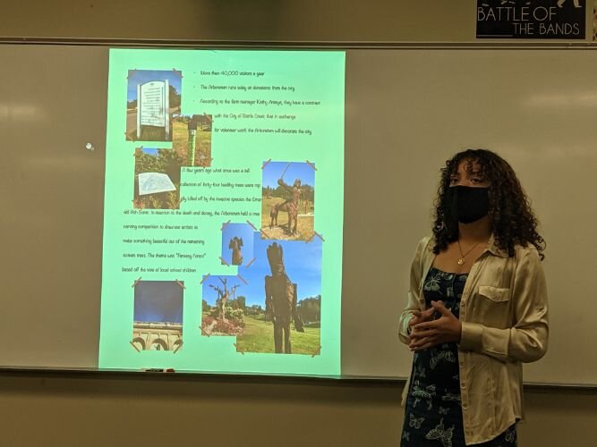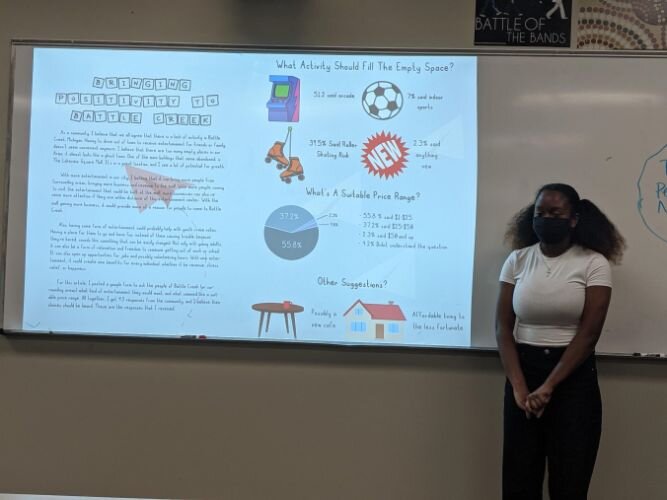 Their presentations, made on Wednesday, Sept. 29, 2021 were part of a collaboration between the CACC’s Graphic Communications Technology program and a pilot Voices of Youth program offered through Second Wave of Southwest Michigan.