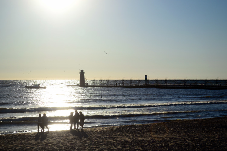 Shower, put on clean clothes, ride the trail another five miles into South Haven. Eat a torta at Su Casa. Go to the beach. Watch the sun get low over Lake Michigan. The sparkling water is magical.